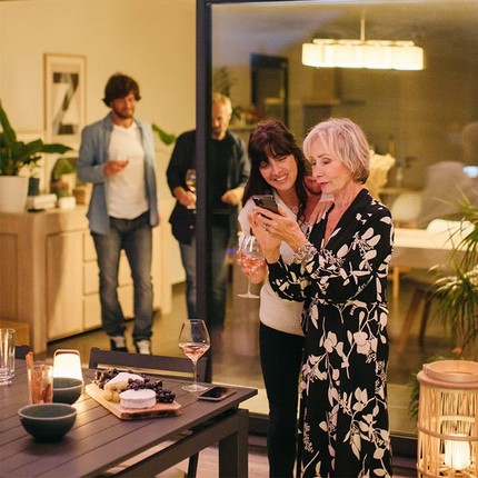 Med smart utomhusbelysning skapar du enkelt den perfekta stämningen i trädgården eller på terrassen. Styr alla lampor med en app på din mobil, skapa scenarier och låt belysningen tändas automatiskt vid solnedgång.