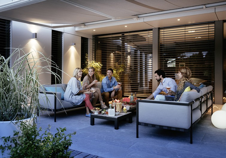 En trädgård eller terrass är som en förlängning av ditt hem. Njut av solen, koppla av i skuggan eller skydda dig mot vind och regn. Med Somfys elektriska utomhuslösningar gör du det på det smartaste sättet. Skapa dessutom stämning på din terrass med musik och belysning – så är den perfekta atmosfären komplett.