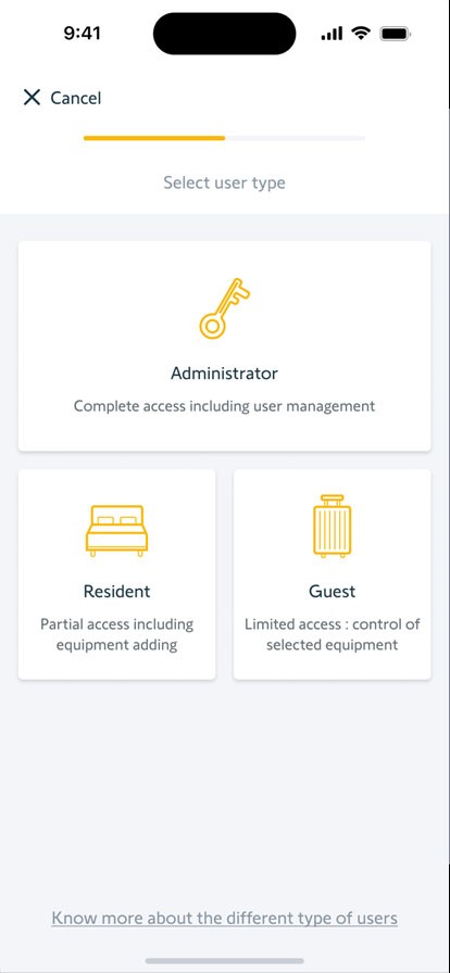 Tilldela personlig åtkomst till familjemedlemmar, vänner, tillfälliga gäster eller hushållspersonal. Ge full eller begränsad kontroll över ditt TaHoma®-system, med full trygghet. Välj mellan olika åtkomstnivåer anpassade efter individuella behov.