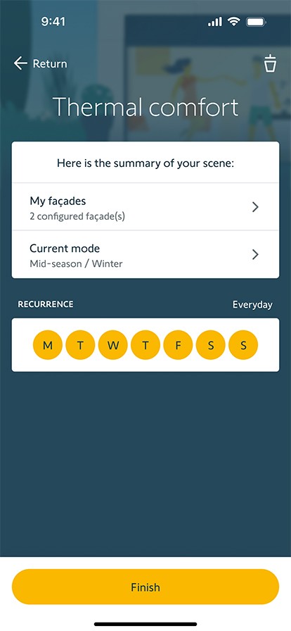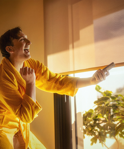 På sommaren blockerar det solljus och minskar behovet av luftkonditionering med upp till 70 %*. TaHoma optimerar både din komfort och energieffektivitet under alla årstider.