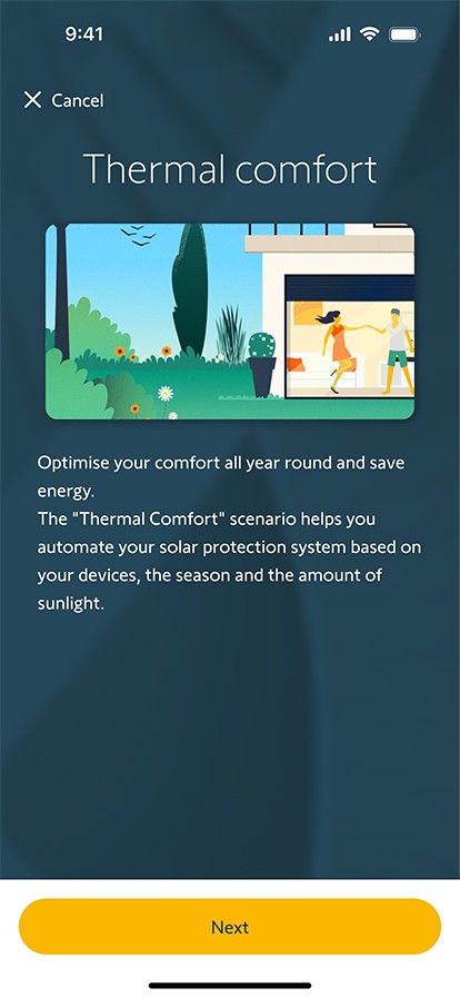 Det är så enkelt att få det mer bekvämt både inomhus och utomhus året runt. Anslut dina rullgardiner, persienner, markiser och många andra enheter i hemmet till TaHoma® switch, Somfys smarta hem-hubb. Ditt smarta hem förbättrar din termiska komfort åt dig.