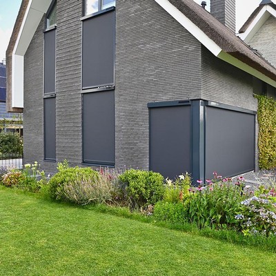 I vissa modeller, som en screen eller utfallande markis, kommer strömförsörjningen direkt från solljus. Solpanelen fångar upp energin och är kopplad till det inbyggda batteriet. Du behöver då inga kablar och sparar både energi och installationskostnader.