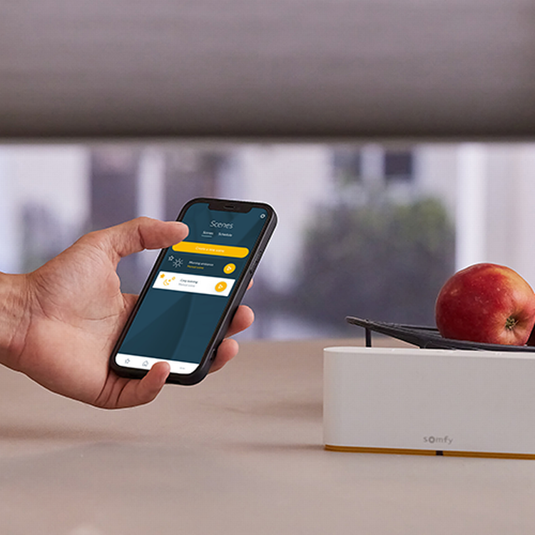 styr du din markis och andra smarta enheter automatiskt via appen, eller med knapparna ovanpå enheten. Låt allt samverka i smarta scenarier, till exempel när solen skiner eller vinden tilltar.