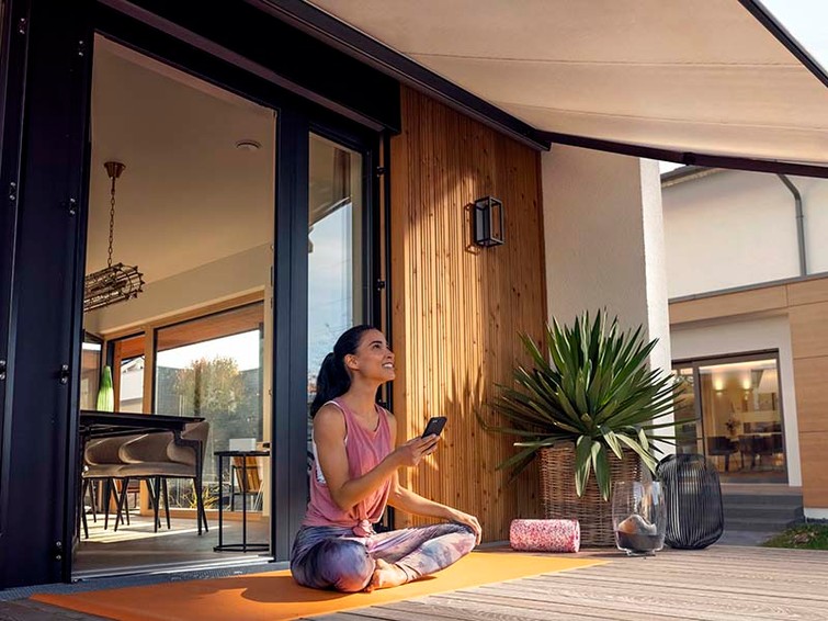 När du har valt en typ av markis uppstår automatiskt frågan hur du vill styra den. En markis bör alltid styras smart och elektriskt – och här är Somfy expert.