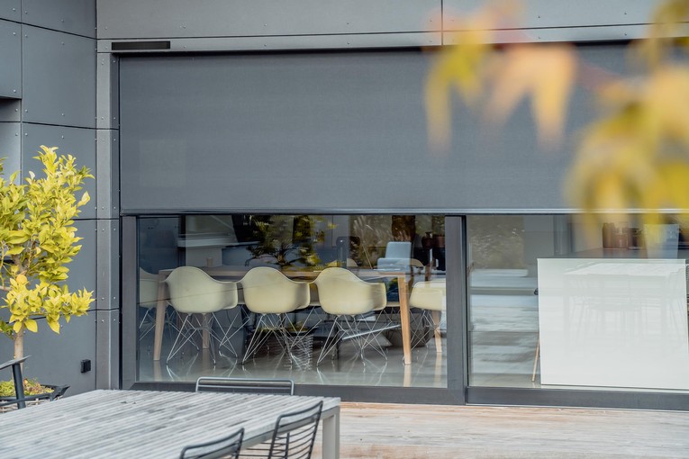 Solcellsdrivna screens finns i flera olika utföranden och material. Egenskaperna hos screenväven avgör hur mycket solljus som blockeras och hur mycket utsikt som bevaras. Somfy-återförsäljare kan ge dig råd om det bästa alternativet för just din situation – beroende på fasadens orientering och dina personliga preferenser.