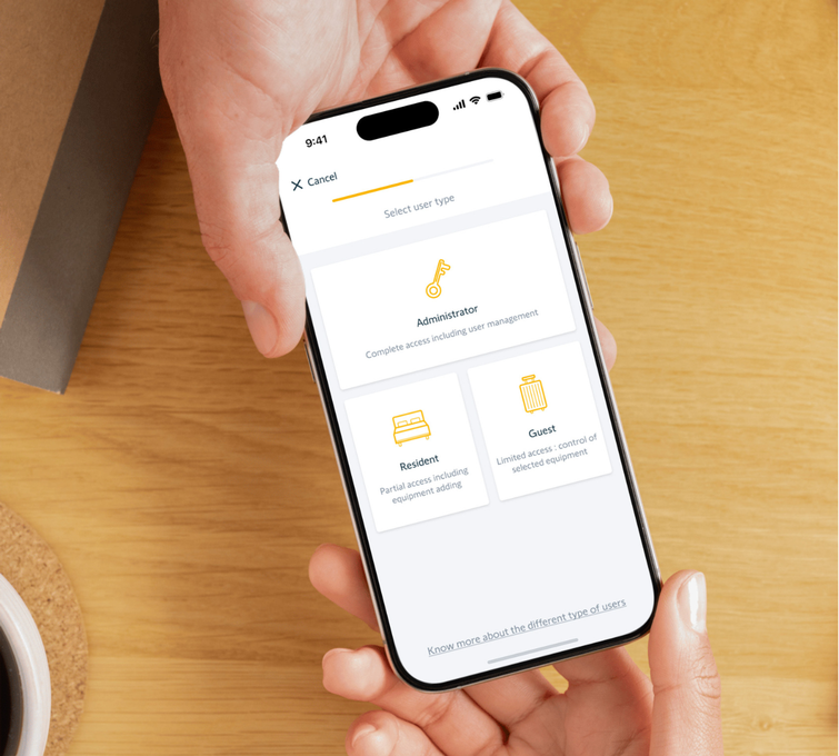 Du kan nu ge personligt anpassad åtkomst till familj, vänner, tillfälliga gäster eller hushållspersonal. Med tre olika åtkomstnivåer – Administratör, Boende och Gäst – har du full kontroll över vem som kan göra vad i ditt hem.